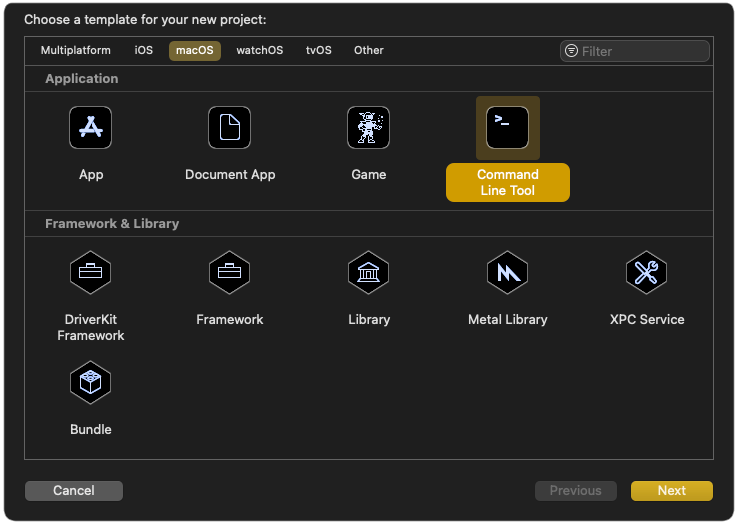 You will have your own preference for the way your code is organised, but I follow a basic structure of constants, globals, functions and then the code that is executed when the program is launched. Xcode provides a single file, main.swift, for all this, though you can break elements out into other files as you wish. There’s no main() function — your Swift code just runs from the top.