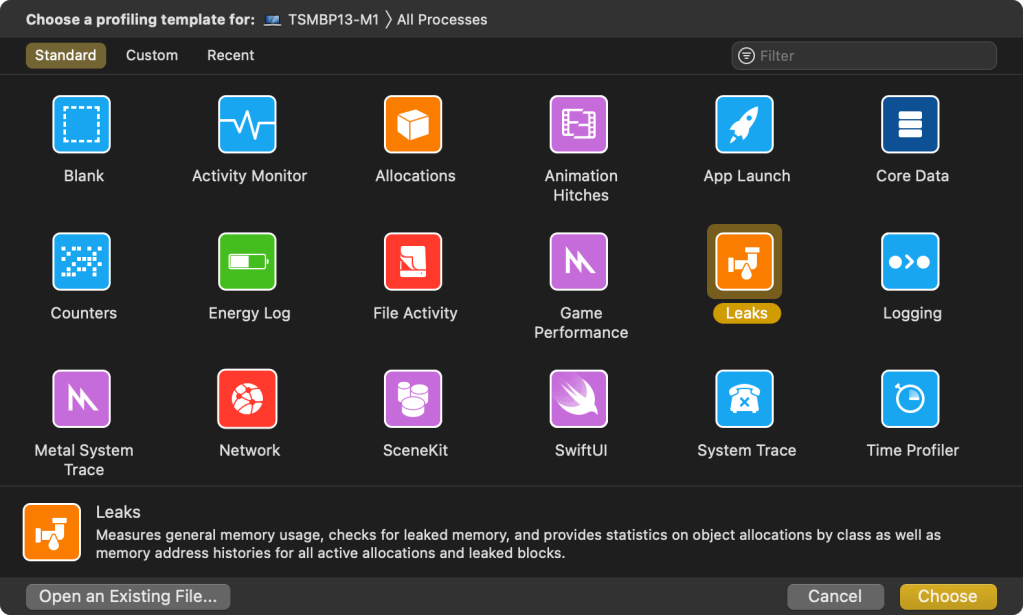 I discovered these tools by searching the online Xcode user manual, but by then I had already refactored my code so that I was using an autorelease pool to ensure the many NSAttributedStrings being generated in the rendering process were correctly being disposed of. I figured this was probably unnecessary, but you never know. I also shifted almost the entirety of my provideThumbnail()‘s code into the declaration of the closure I pass back to the handler. As I added each one, I didn’t see much improvement: 98% of icons were being rendered correctly, the remainder were not. And it wasn’t the same files every time.
