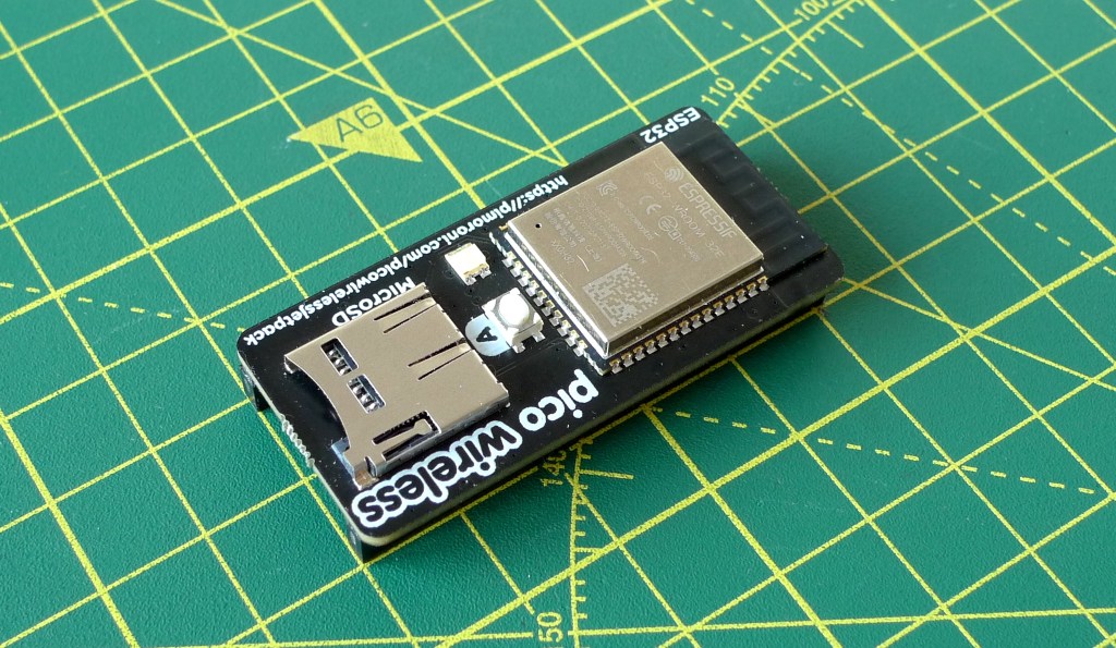 This dude is a Pico-sized board that features the near ubiquitous ESP32 WROOM-32E module for 802.11n WiFi. Since the ESP32 and its attached antenna occupy just under half of the board, Pimoroni’s designers decided to fill the remaining space with a MicroSD card slot, a button and an RGB LED. As Barry Norman used to say, “and why not?”