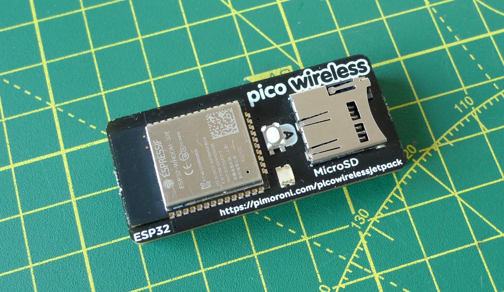 Now, Pimoroni warns that C/C++ support for the MicroSD slot is “quite experimental”, but apparently it’s more solid if you use CircuitPython. Me, I wasn’t interested either way, though I may try it out in due course. One nice touch with the PicoWireless: the MicroSD slot’s two data pins pass through exposed traces on the back, so if you definitely don’t want the card slot and desperately need the Pico’s pins 27 and 2 — GPIO pins 20 and 21 — you can slash the traces to free up those pins for use by your application.